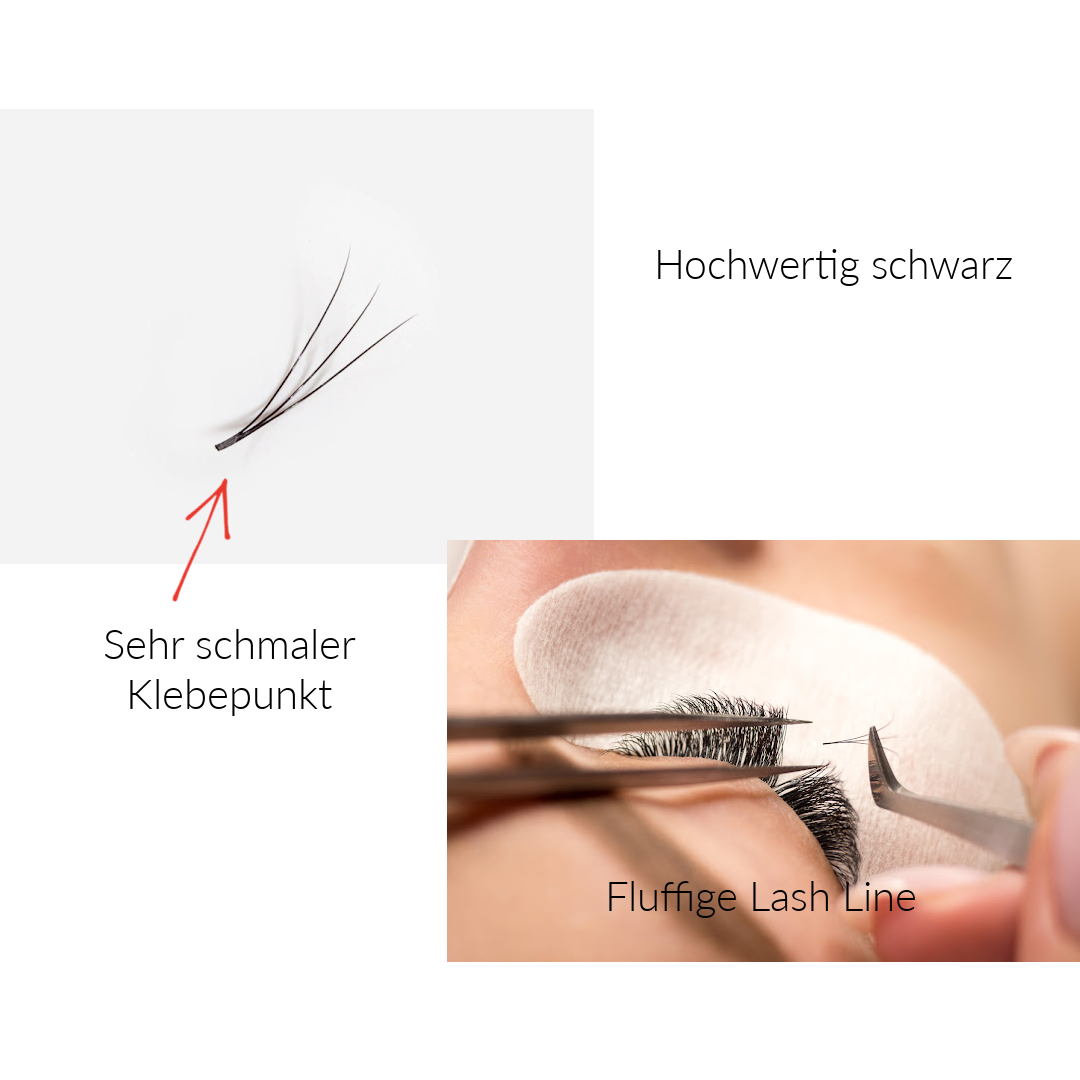 500 Stk. fertige Wimpernfächer in 3D Qualität in den Stärken 0.07 und 0.10 und der Biegung CC, maximale Zeitersparnis bei der Behandlung!