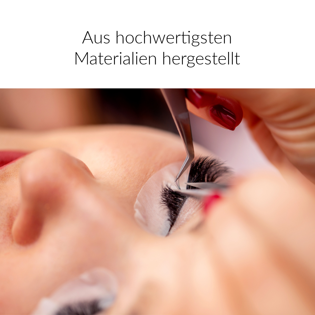 Nein, unsere Wimpern werden aus PBT (Polybutylenterephthalat) oder PET (Polyethylenterephthalat) hergestellt. Diese Fasern sind gut verträglich und haben den Vorteil, dass sie nur sehr geringe Feuchtigkeit aufnehmen, farbecht- und robust sind und wie echte Wimpern aussehen. Daraus lassen sich tiefschwarze- oder hochglänzende Drama-Lashes aber auch natürlich wirkende semimatte Wimpernextensions herstellen.