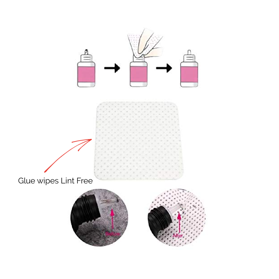 Fusselfreie Glue Wipes zur Entfernung von Kleberresten am Flaschenhals und zum Trocknen der Pinzetten nach der Reinigung.