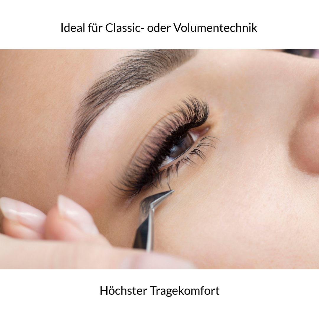 Höchster Tragekomfort: Die Kombination aus natürlicher Biegungsstruktur und Leichtigkeit macht sie perfekt für Classic- oder Volumentechniken – damit der Look deiner KundInnen ebenso bequem wie atemberaubend ist.